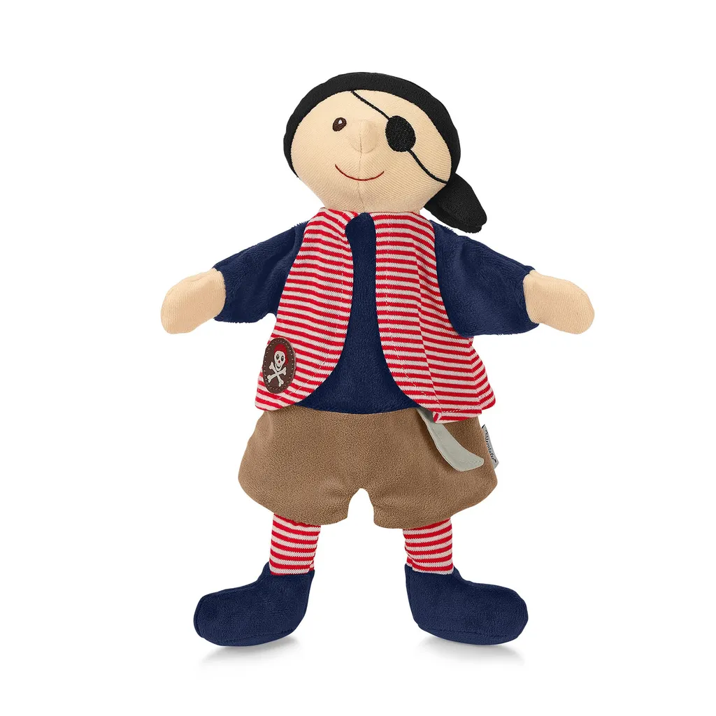 Die liebevolle HanDoppelpackuppe Pirat ist von Kopf bis Fuß aus Softvelour und Jerseyringel. Sie bringt kleine Theatermacher auf fantastische Ideen.