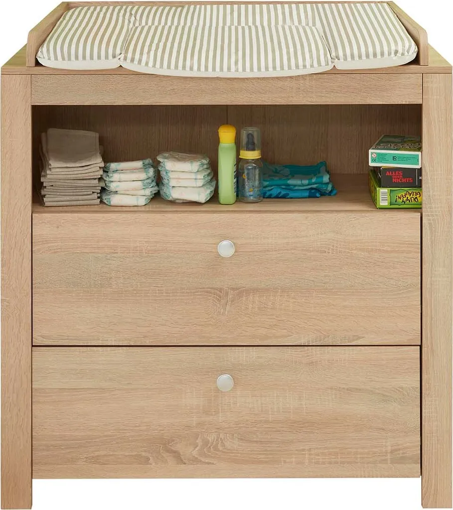 - Wickelkommode: 2 Schubkästen, 1 offenes Fach, inklusive Wickelaufsatz, Wickelfläche: 85 x 67 cm, umbaubar zur Kommode, Schubkästen maximal mit 3 Kg belastbar, offenes Fach maximal mit 5 Kg belastbar