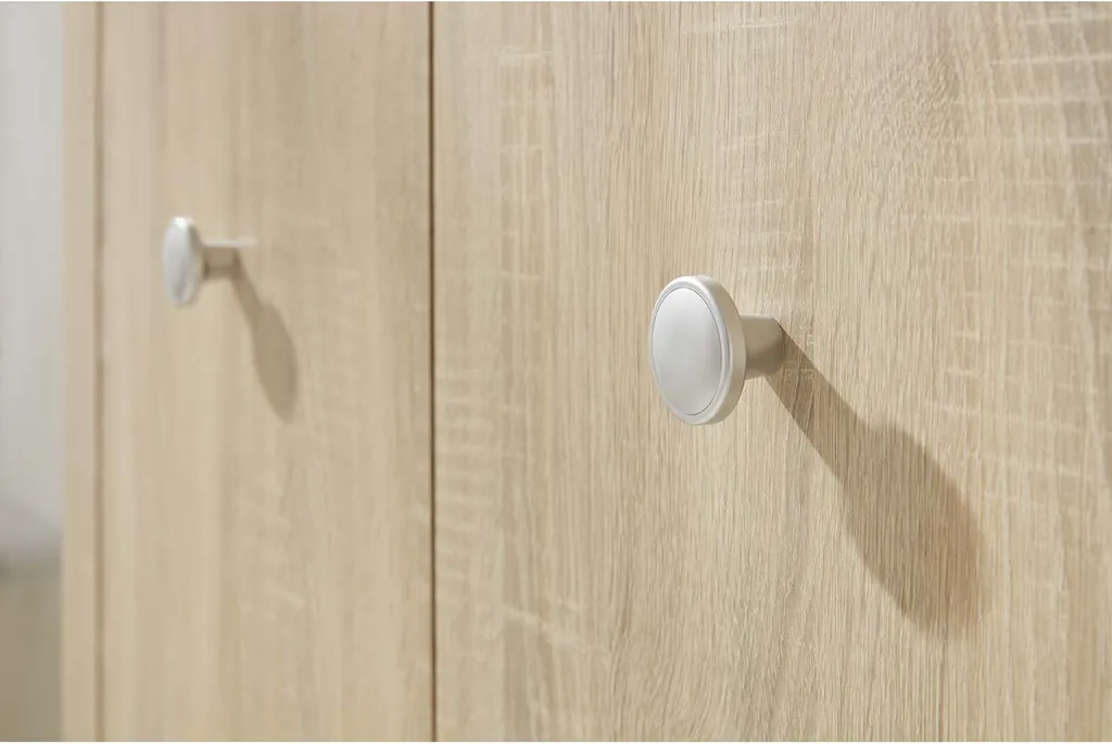 - Korpus & Front: melaminharzbeschichtete Spanplatte Eiche Sägerau