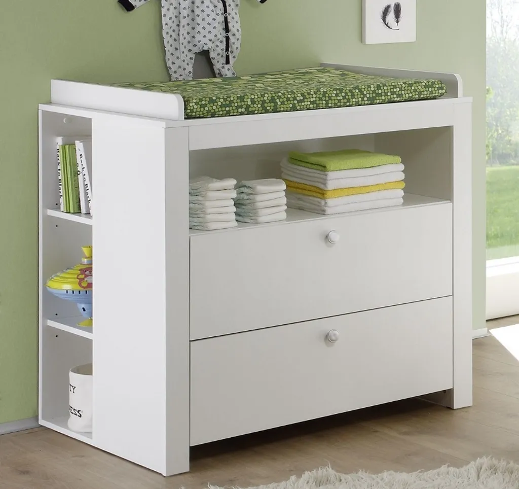 - 1 Wickelkommode: 2 Schubkästen, 1 offenes Fach, Mit Wickelansatz,