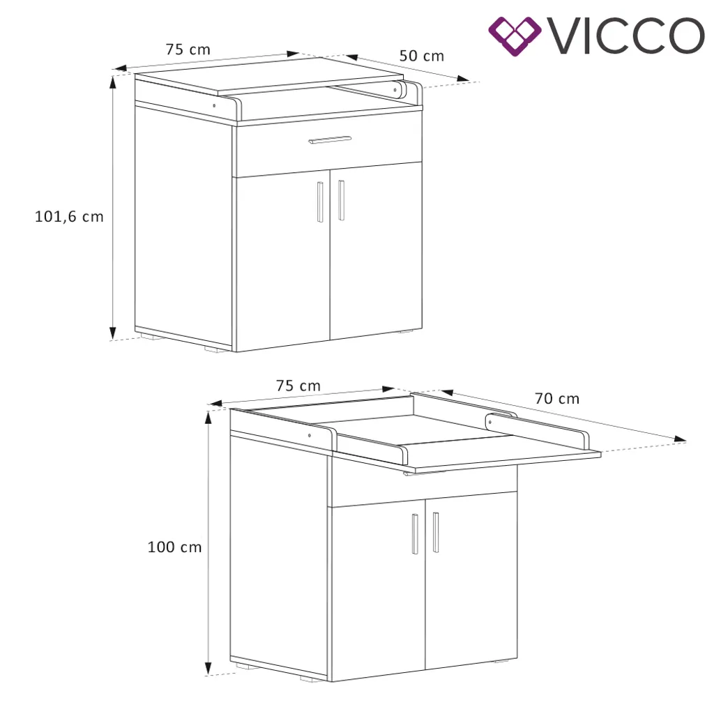 Wickelfläche (ausgeklappt): 75 x 70 cm (BxT)