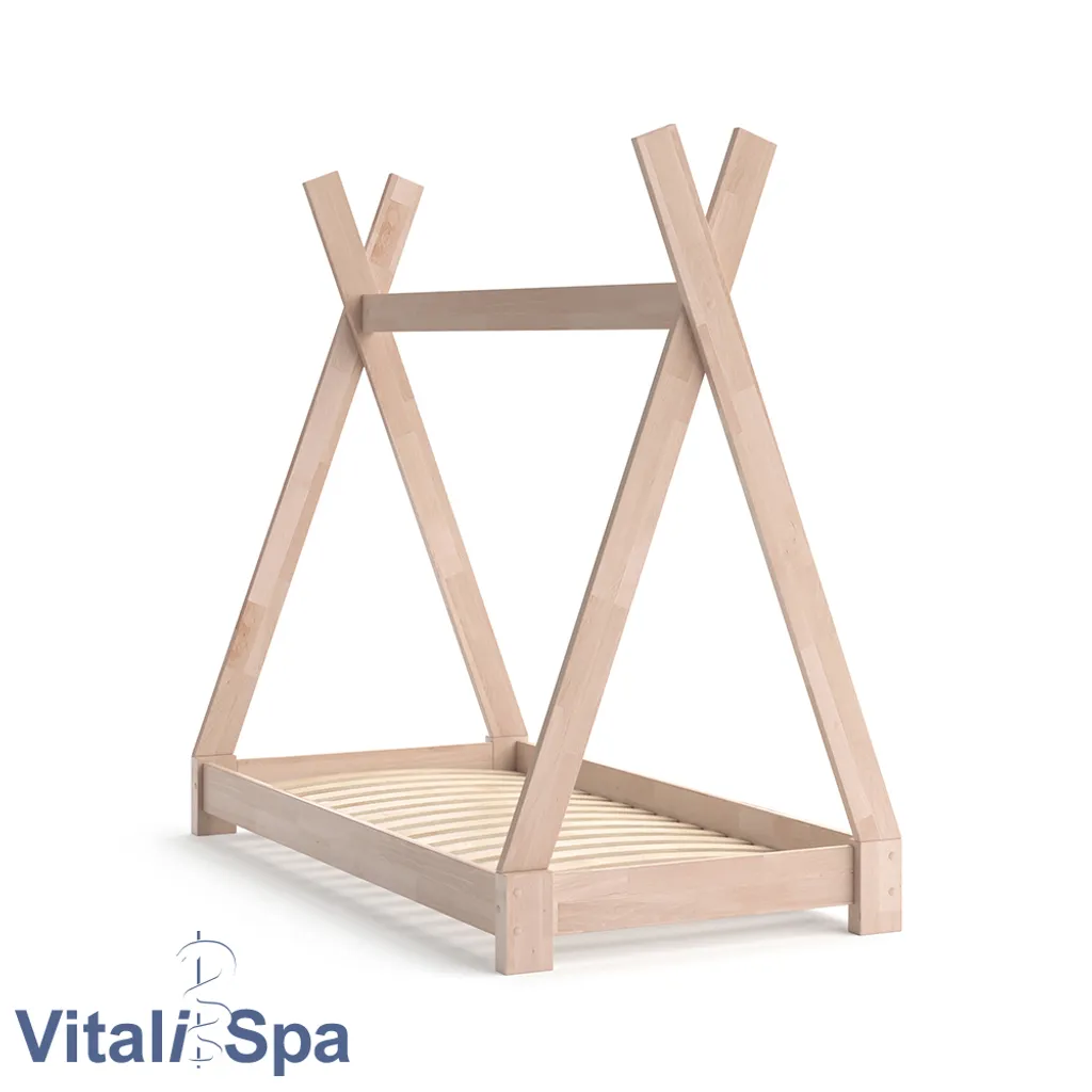 Der moderne skandinavische Stil dieses Naturholz-Möbelstücks passt in nahezu jede Kinderzimmereinrichtung. Ob Lichterkette, Wimpel, Betthimmel oder viele Kuschelkissen, die einzigartige Formgebung eröffnet viele Ideen und lädt zum Dekorieren ein.