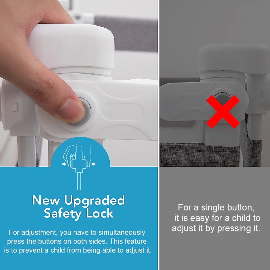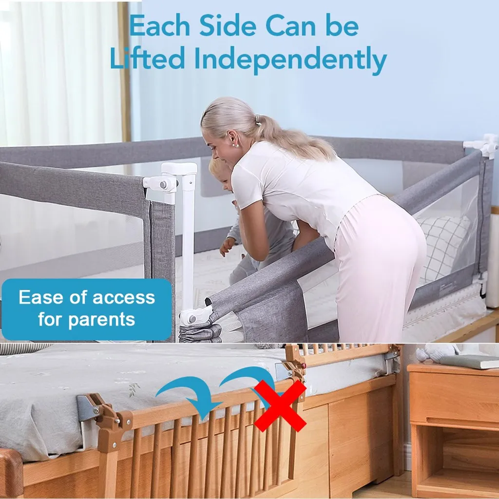 【Jede Seite kann unabhängig angehoben werden】Jede Seite unserer Bettleitplanke mit einer lebenden Schnalle. Sie müssen nur beide Seiten absenken, um das Bett leicht betreten und verlassen zu können, oder das Baby auf dem Bett halten. Wenn Sie längere Zeit am Bett sitzen müssen, kann unsere Leitplanke vollständig bis zum Bett abgestellt werden, um Beschwerden zu vermeiden.
